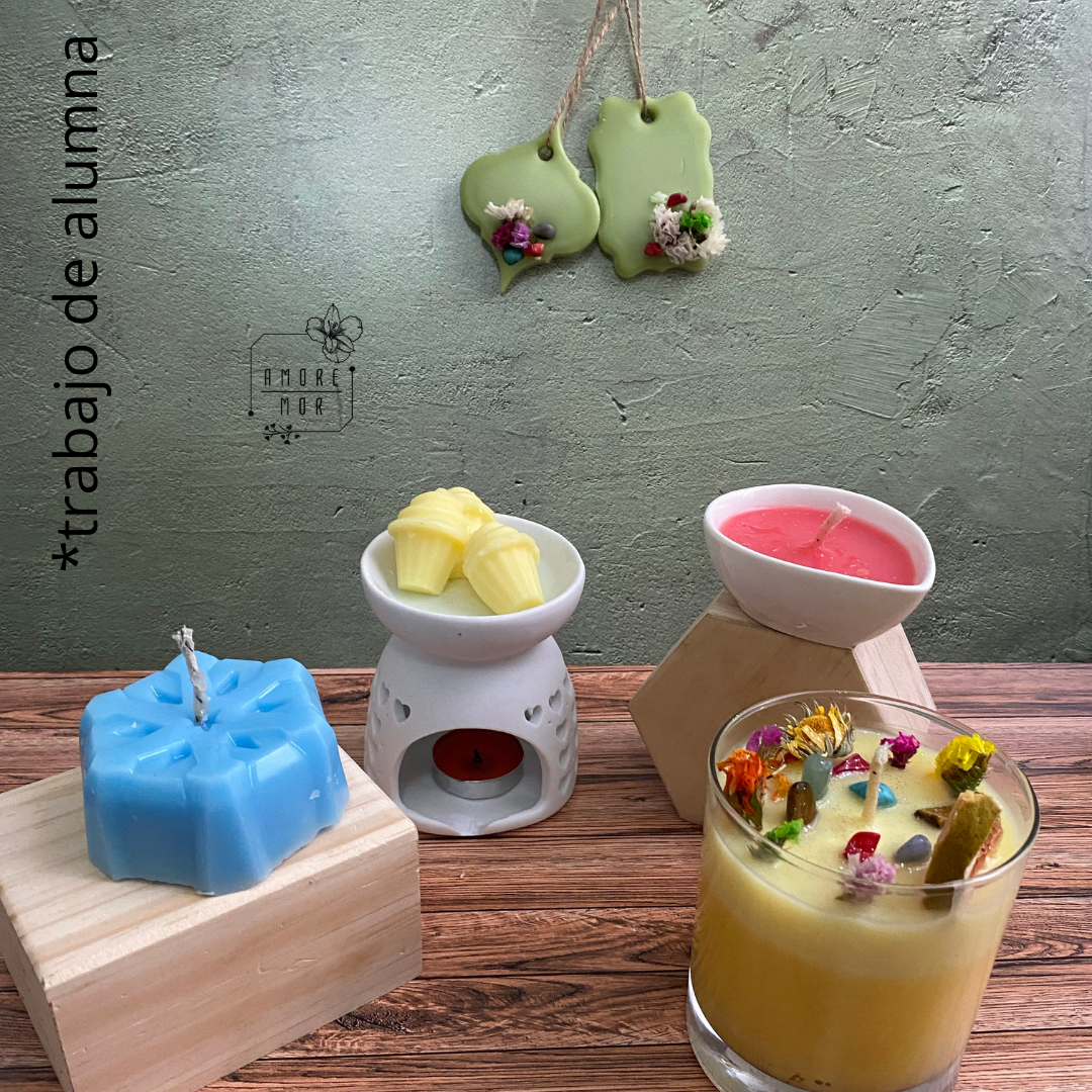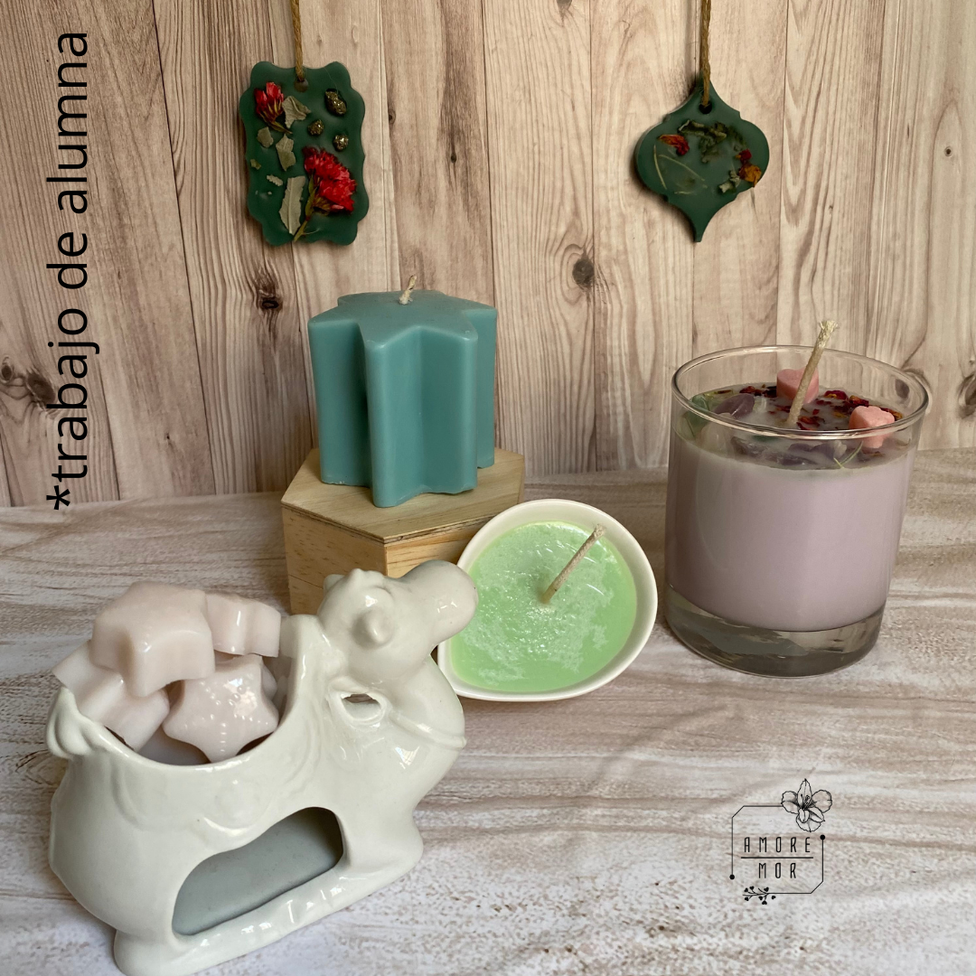 Recomiendo muchísimo el taller, es claro y práctico. En una sola sesión trabajas varios tipos de velas y la vibra de ambas es muy bonita.